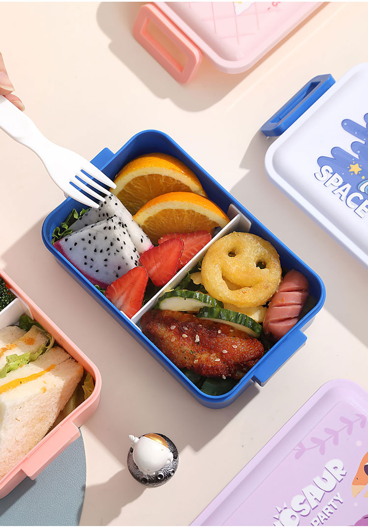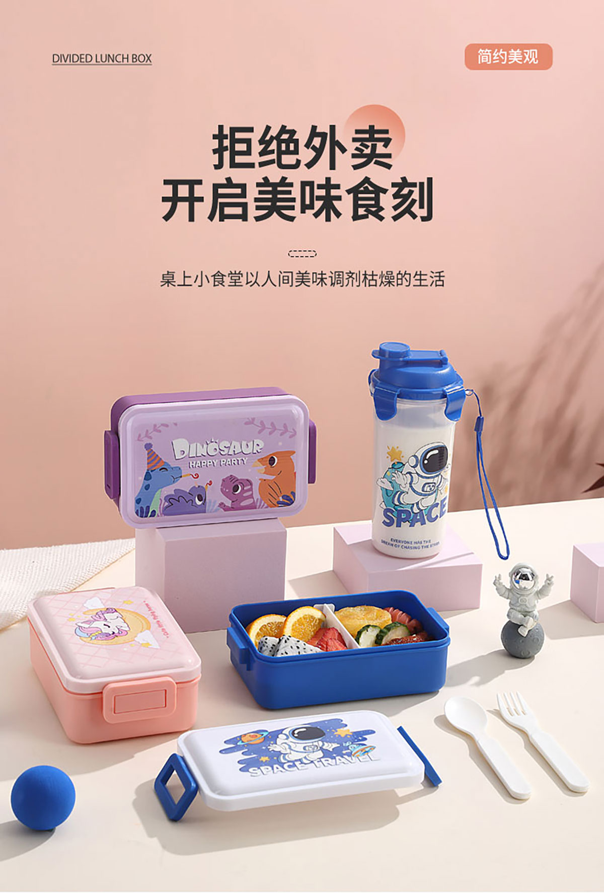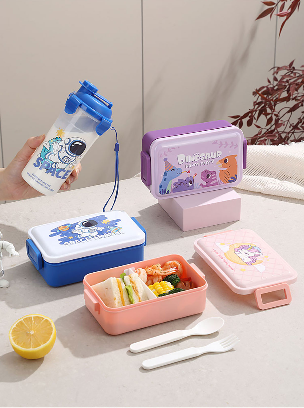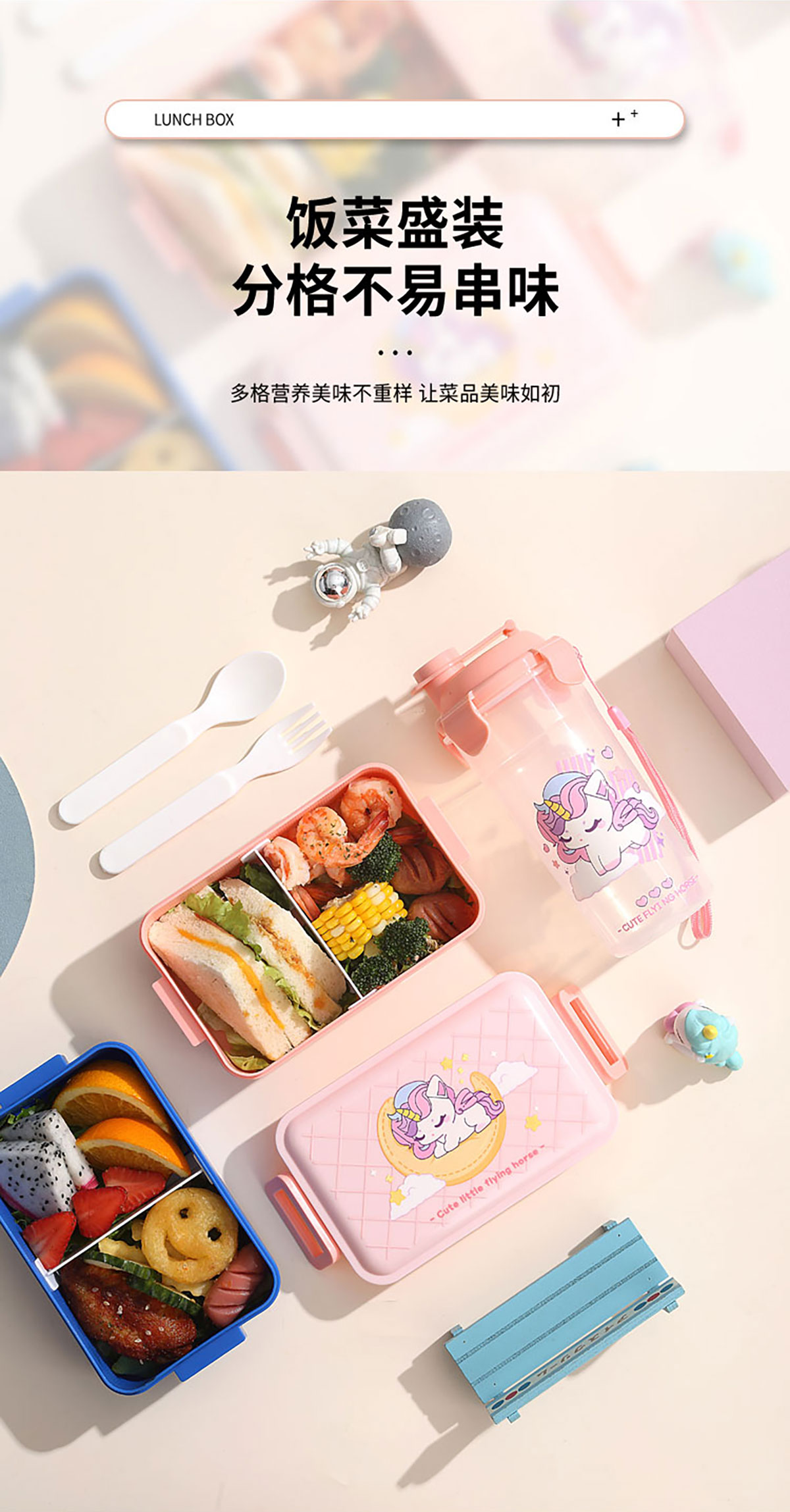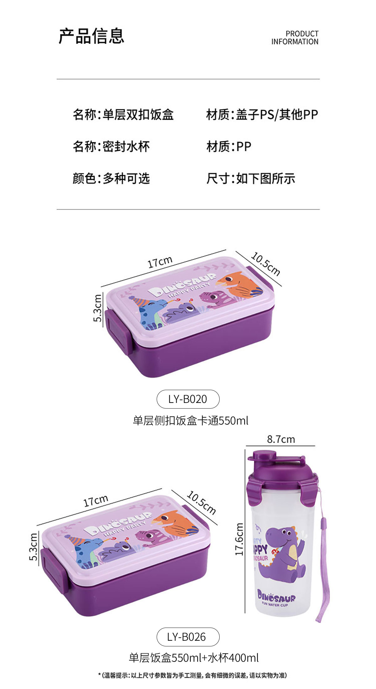 單層側(cè)扣飯盒卡通550ml/套裝飯盒550ml+水杯400ml
