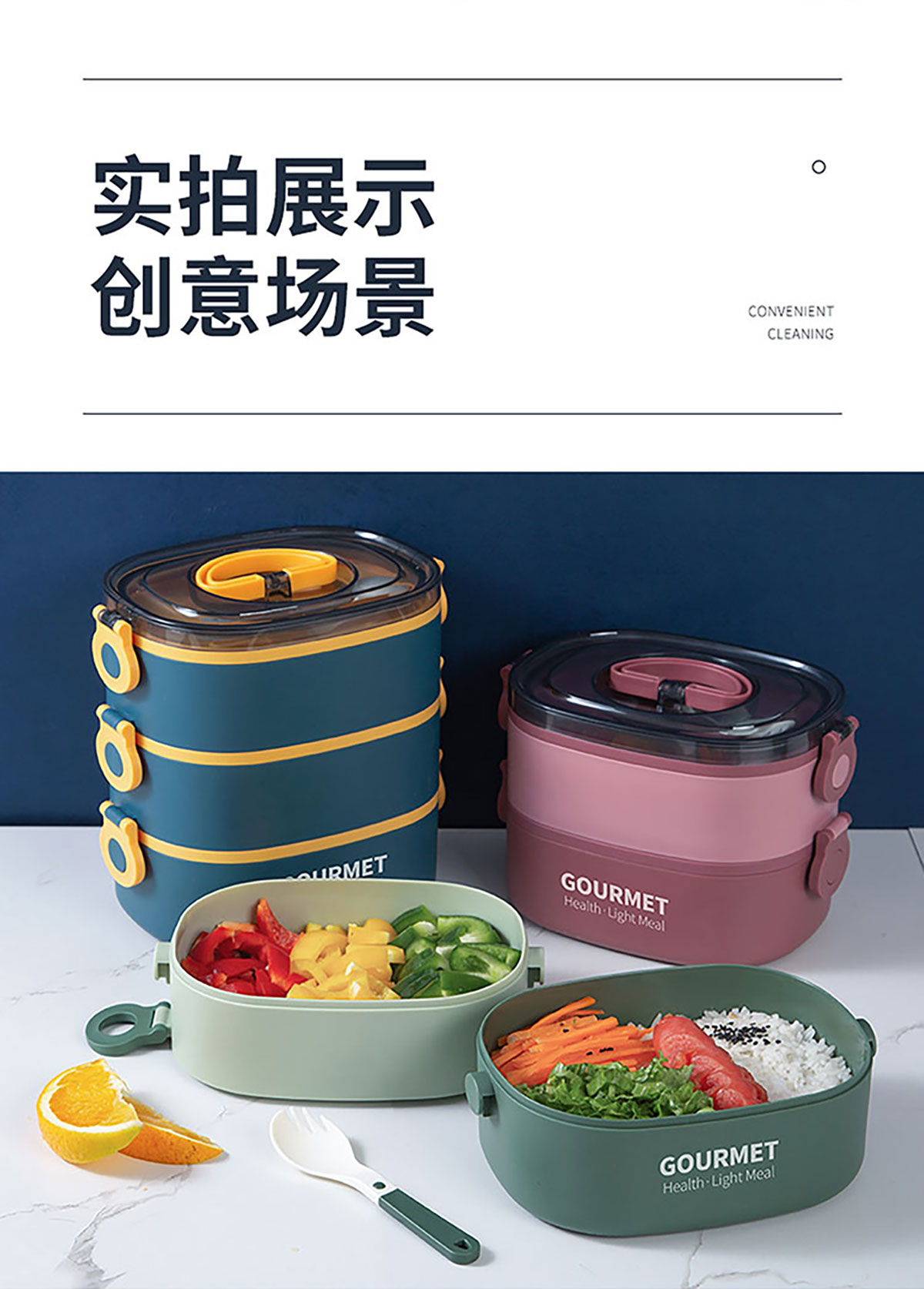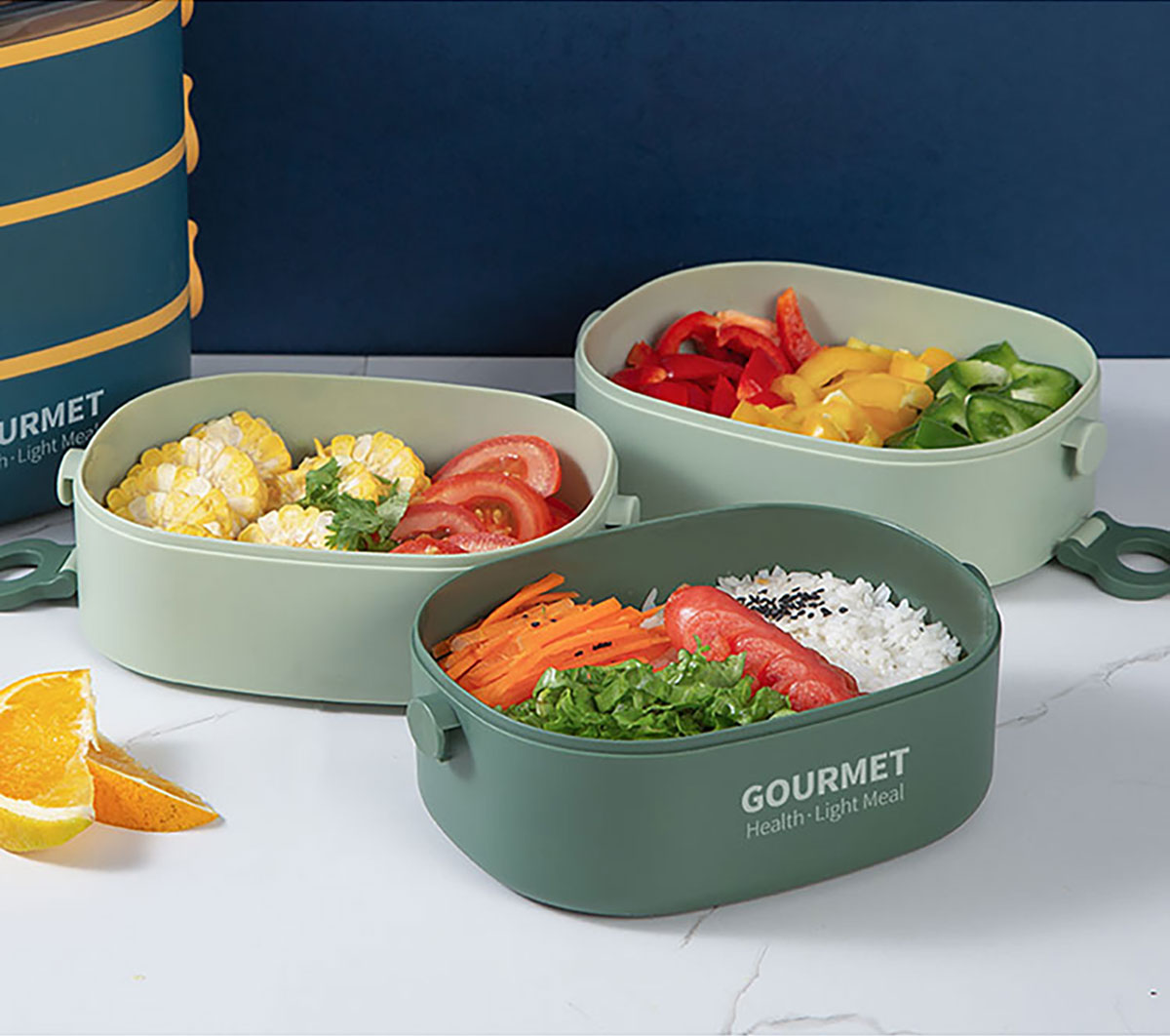 味鮮橢圓單層/雙層/三層塑料飯盒