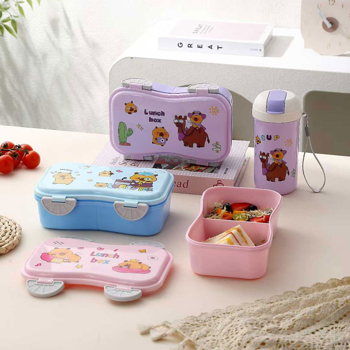 跑車卡通套裝飯盒(飯盒800ML+水杯450ML)