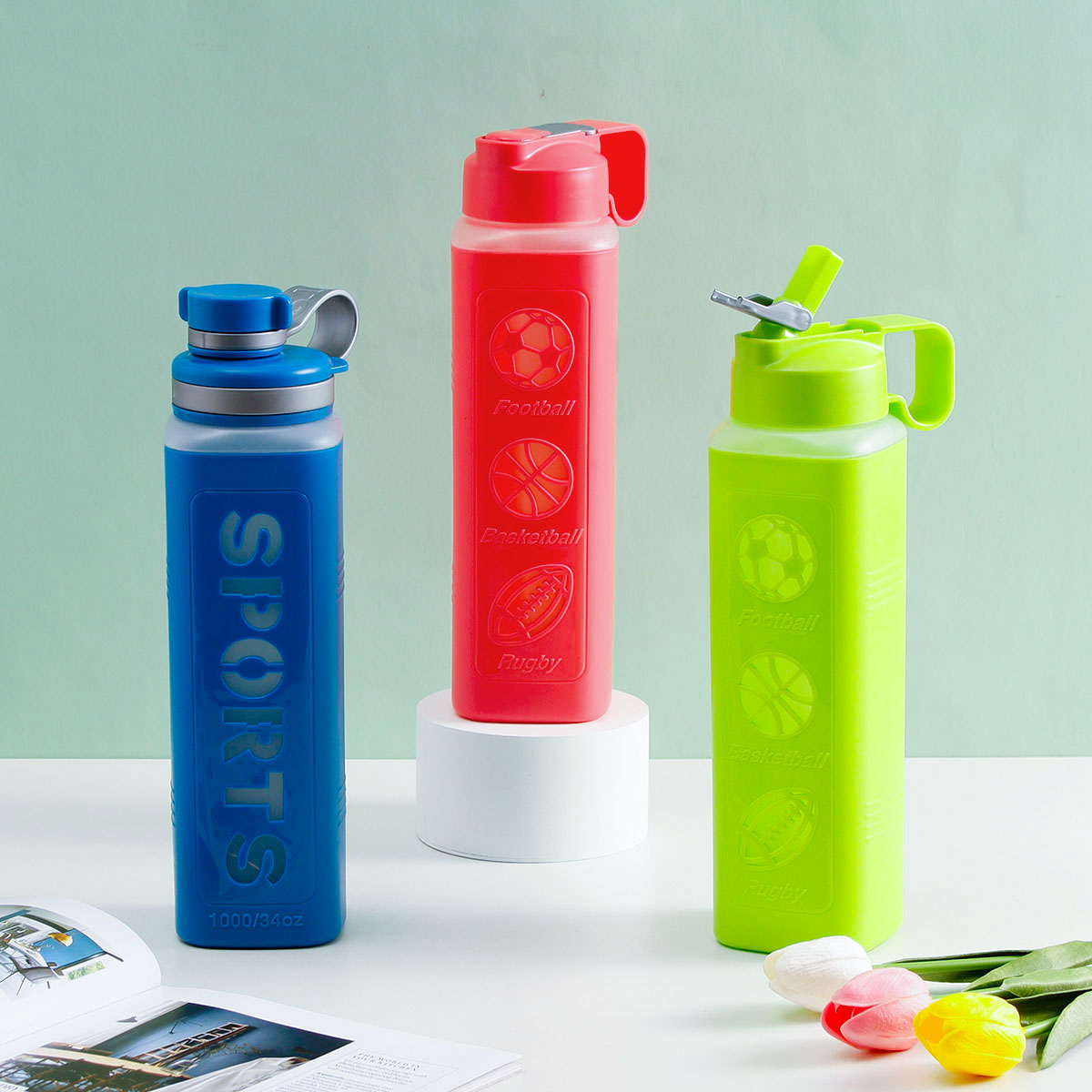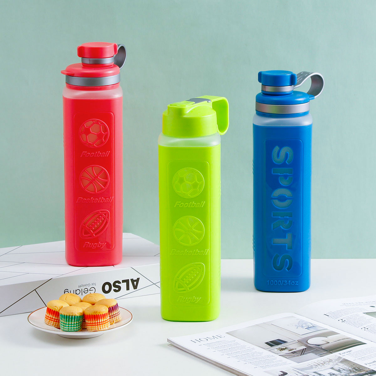 雙層直式吸管/聯(lián)帶方形水杯(1000ml)