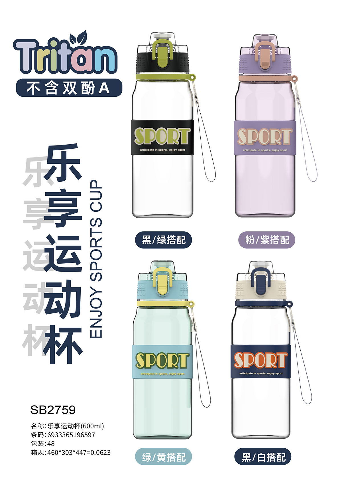 隨行運(yùn)動水杯(600ml) 彩盒裝/OPP裝