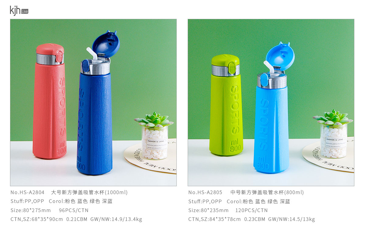 大號/中號新方彈蓋吸管水杯(1000ml/800ml)